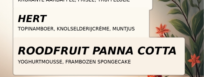 Een feestelijk menu met keuze uit vlees vis en vega